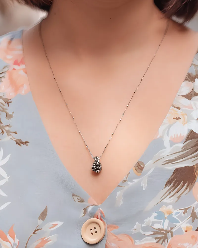 Ένα ιδιαίτερο, διακριτικό μενταγιόν εμπνευσμένο από τη φύση και τη μαγεία της. Πώς να μην ερωτευτείς αυτό το μικροσκοπικό ασημένιο κουκουναράκι; Φόρεσέ το μόνο του ή σε συνδυασμό με κολιέ σε διαφορετικά μήκη για πιο εντυπωσιακό αποτέλεσμα.